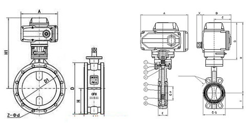 1、設計新穎、合理,結構獨特,重量輕,啟閉迅速。 2、操力矩小,操作方便,省力靈巧。 3、分為電動對夾式軟密封蝶閥和電動法蘭軟密封蝶閥。 4、密封件可以更換,密封性能可靠達到雙向密封零泄漏。 5、密封材料耐老化、耐腐蝕,使用壽命長 |  電動法蘭軟密封蝶閥結構 電動對夾式軟密封蝶閥結構 |