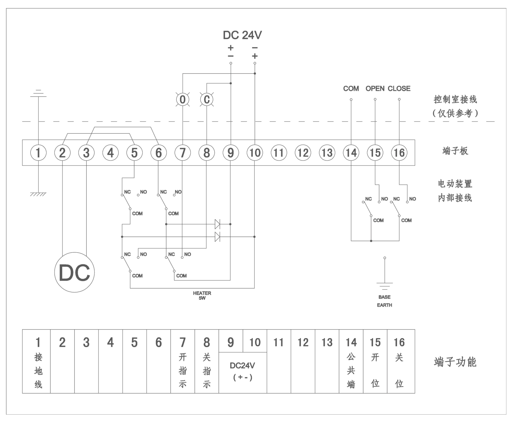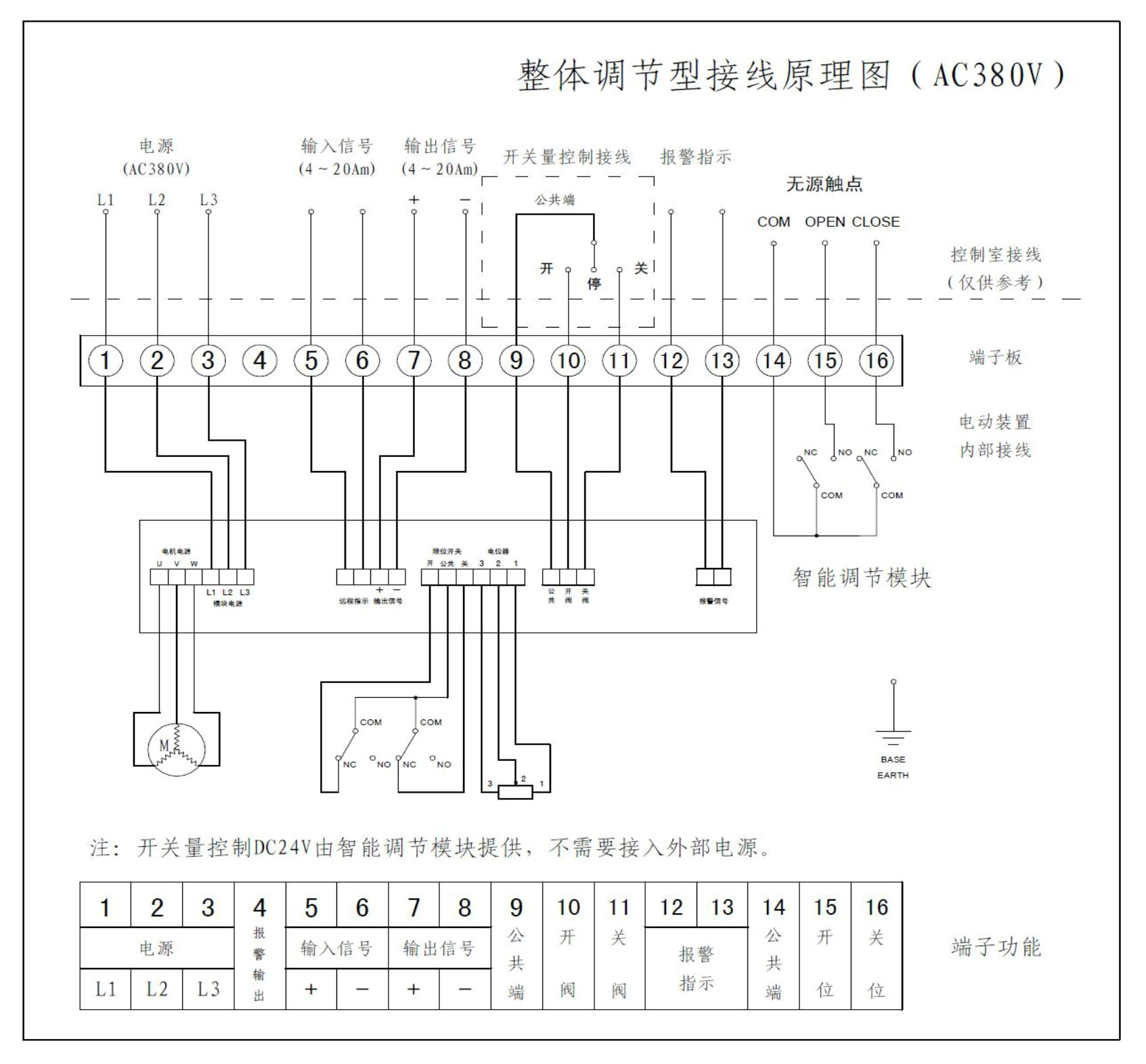 注意:以上線路圖僅供參考,實際以產品附帶電路圖為準。另,每個廠家的電動裝置均不一樣,接線方式也都不盡相同,請勿以此為標準去執行操作,若產生一系列問題及發生相關事故,本公司概不負責,還望悉知!